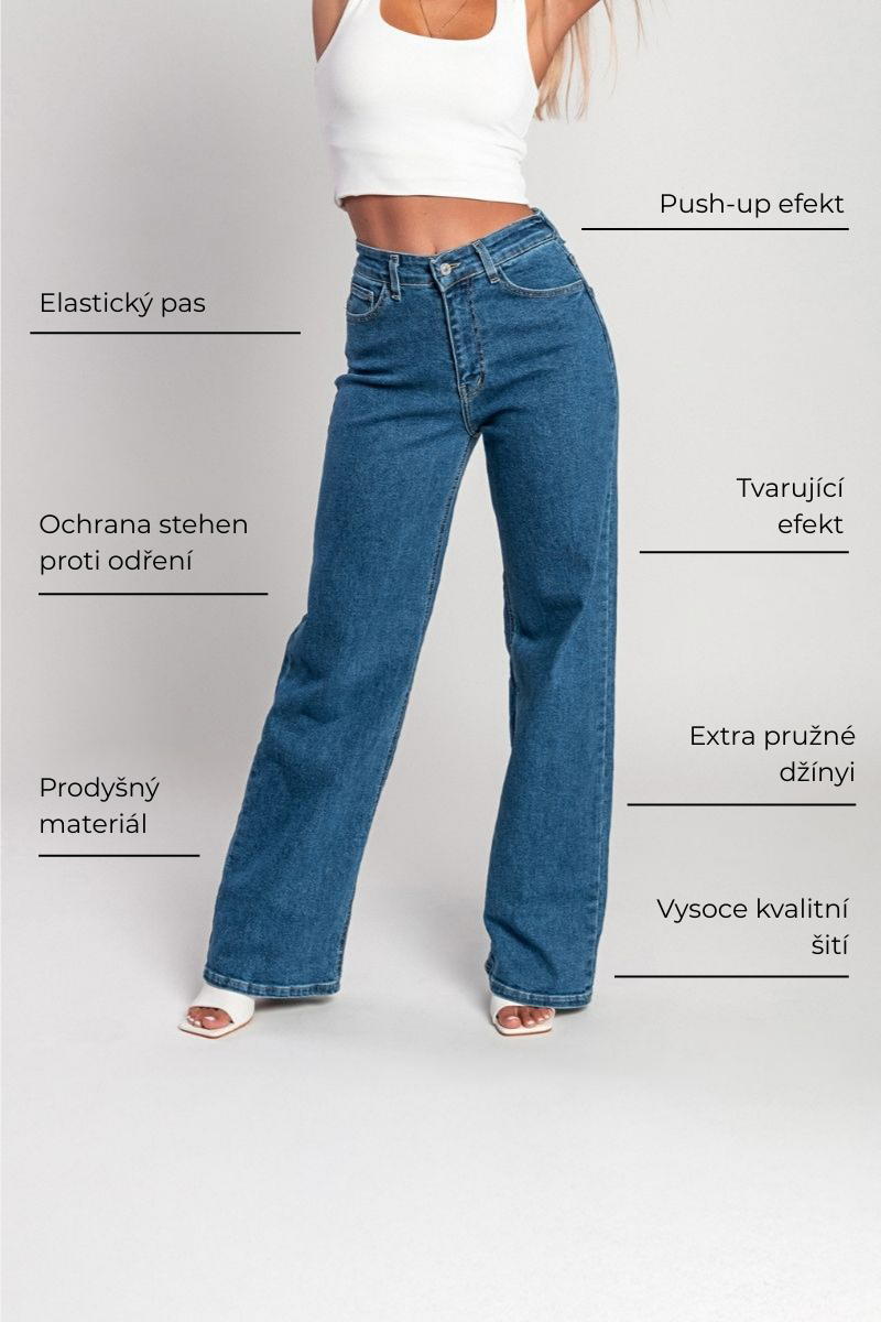 30K Super pružné vysoké pasové široké džíny